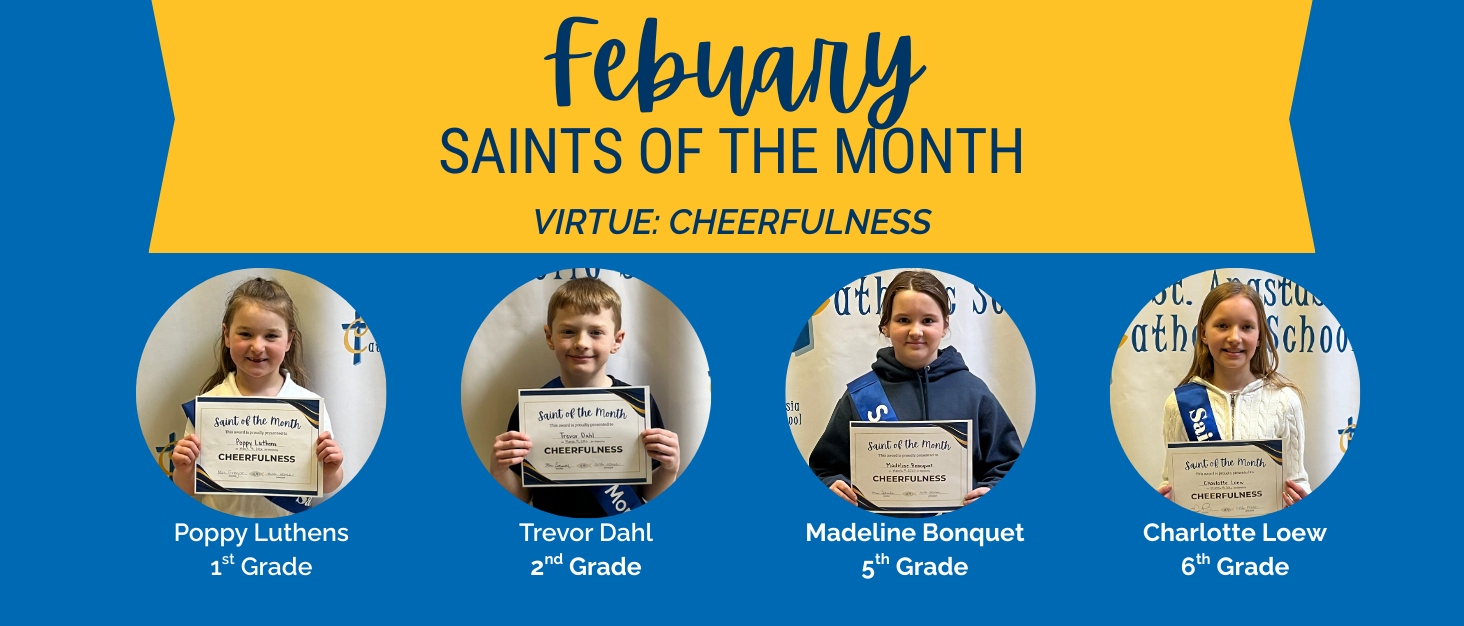 At St. Anastasia Catholic School, our Saint of the Month program continues to highlight students who demonstrate strong character, academic responsibility, positive attitudes, and a commitment to living out our monthly virtue.